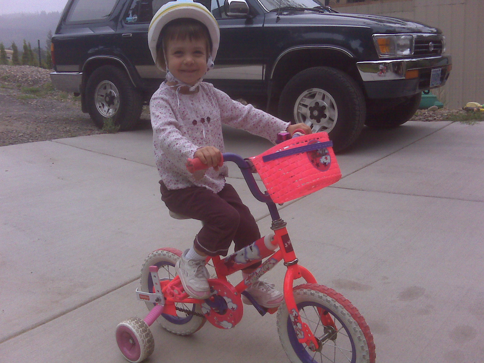 Now, I was trying to think of a way to save it for later, but in the end I realized that I just needed to give it to her. She has taken to this new bike like a baby to diapers, like a fish to water, like… well, you understand.